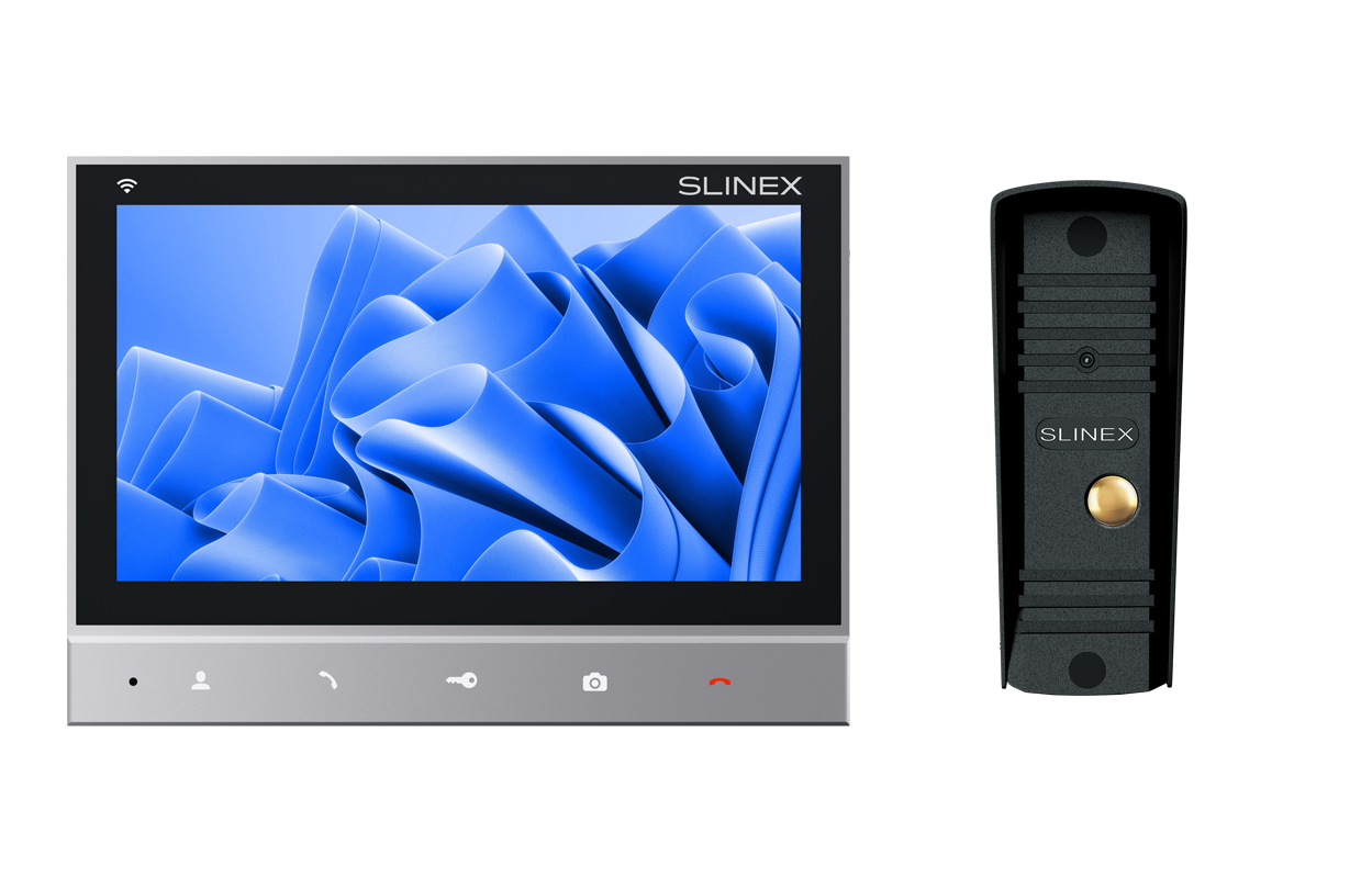 Цветной настенный видеомонитор с 7″ TFT LCD экраном формата 16:9, разрешение 1024×600. Сенсорные клавиши с подсветкой, встроенный блок питания. Форматы – AHD/CVBS/TVI/CVI.  Запись фото или видео на microSD карту до 256 ГБ. Поддержка 1-й вызывной панели. Получение входящего вызова от вызывной панели на смартфон, подключение к сети Ethernet, встроенный Wi-Fi, удаленный просмотр. Питание: ~100–240 В или +13,5 В, потребление до 8 Вт. Размеры: 176×129×23 мм.
