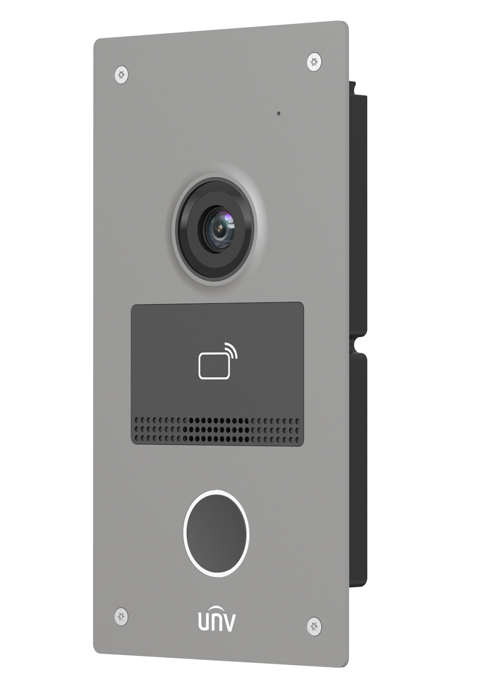 Стандартный PoE/ 12В DC, IC считыватель; Хранилище: 10000 карт, Встроенный микрофон и динамик, 1 RS485 интерфейс, 2 реле, 4 тревожных входа, IP65, IK08, -40°C ~ 60°C, Поддержка приложения UNV-Link