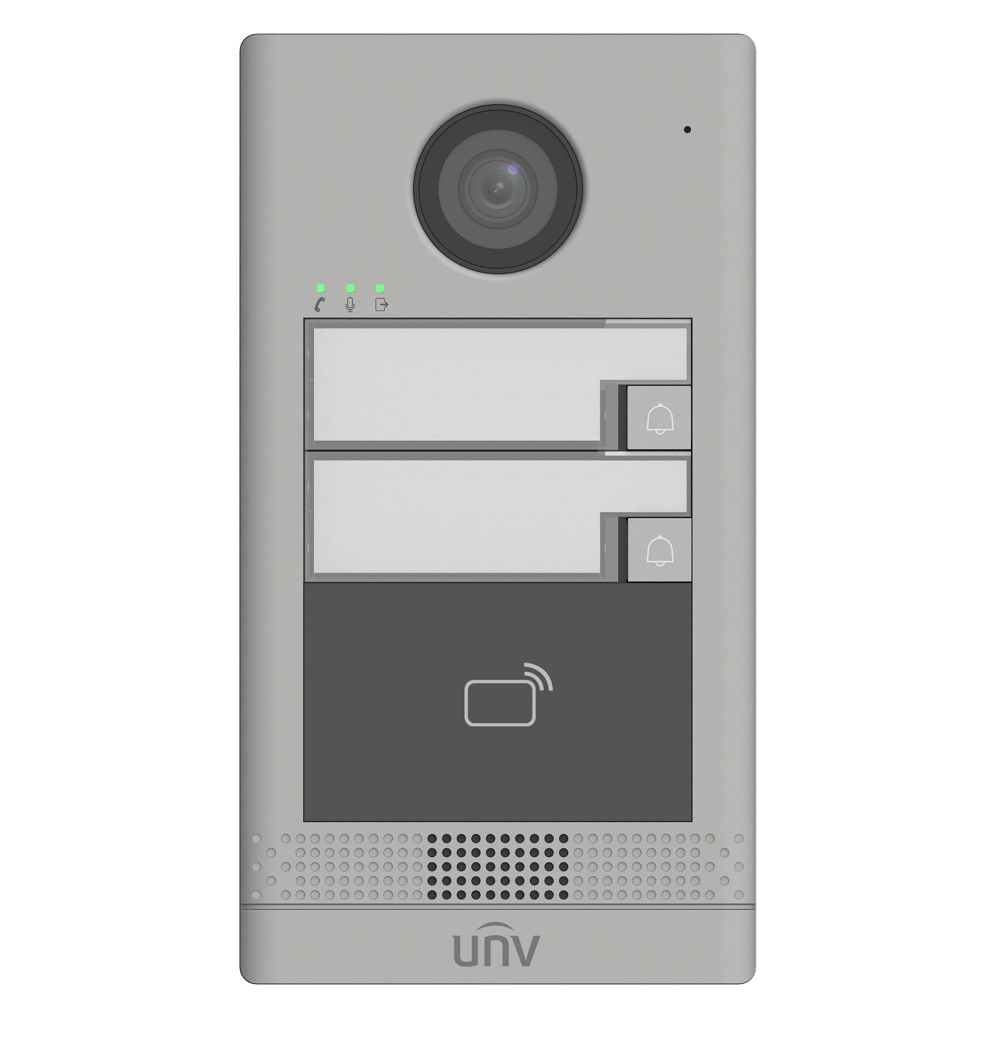 Стандартный PoE/ 12В DC, IC считыватель; Хранилище: 10000 карт, Встроенный микрофон и динамик, 1 RS485 интерфейс, 1 Wiegand, 2 реле, 4 тревожных входа, IP65, IK08, -40°C ~ 60°C, Поддержка приложения UNV-Link