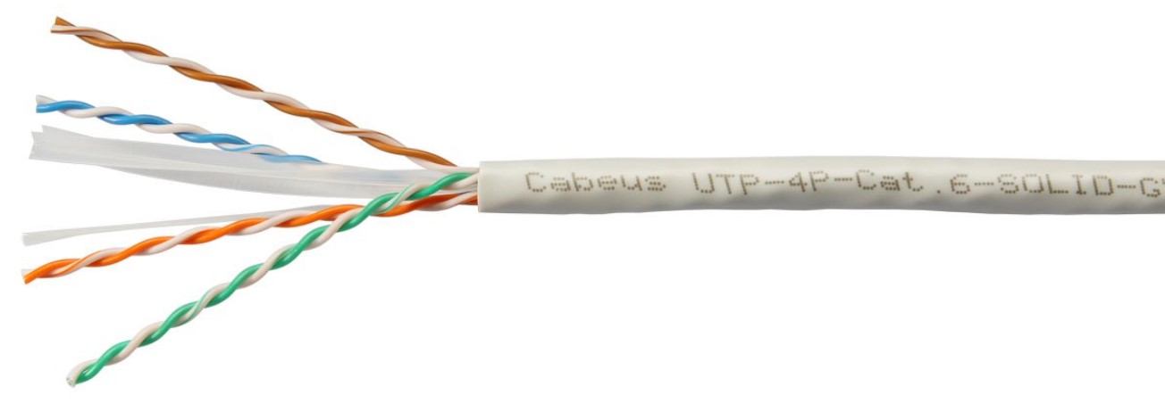 —Cabeus UTP-4P-Cat.6-SOLID-GY Кабель витая пара UTP (U/UTP), категория 6, 4 пары 0,57мм (23 AWG), одножильный, серый (305 м)
