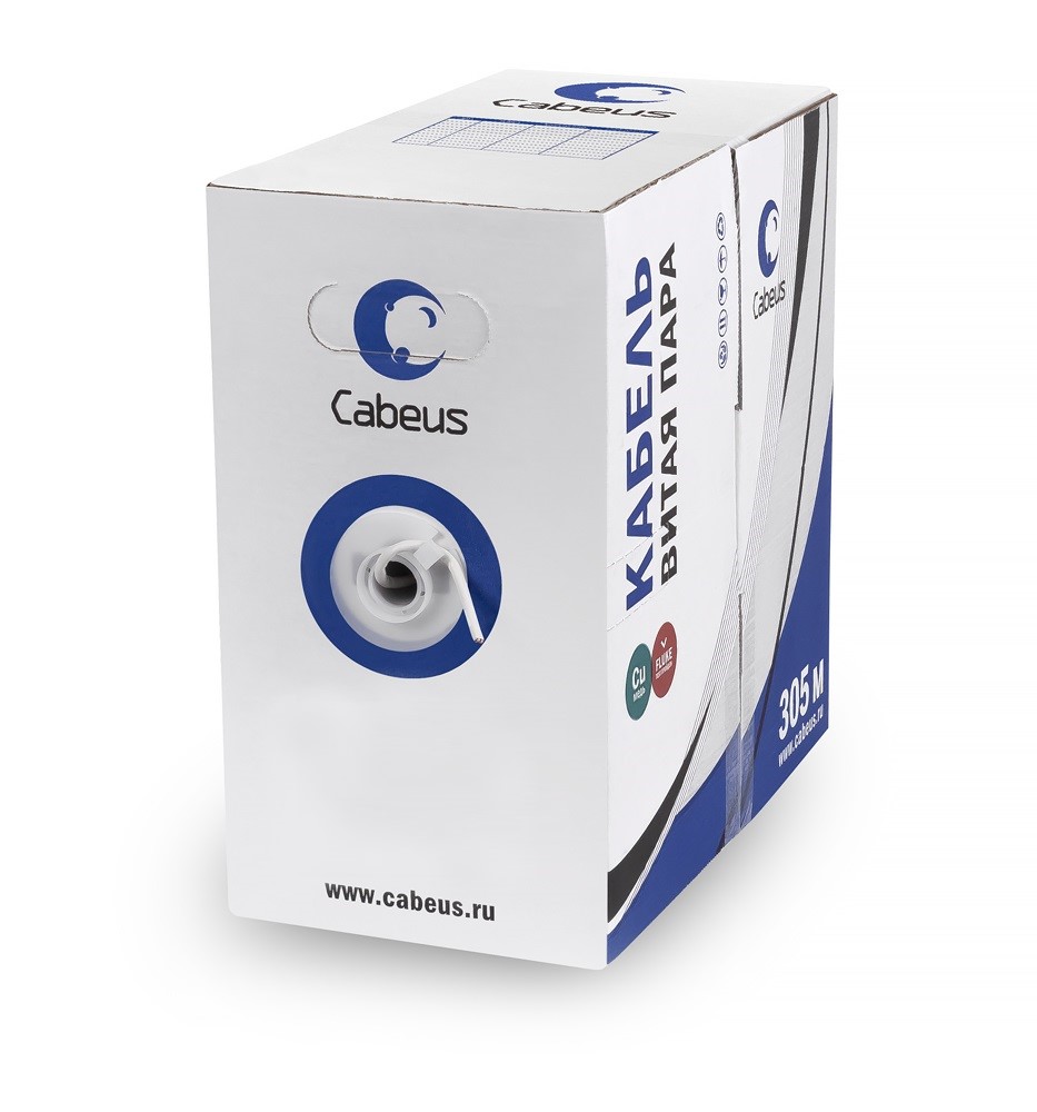 —Cabeus UTP-4P-Cat.6-SOLID-LSZH-GY Кабель витая пара UTP (U/UTP), категория 6, 4 пары (23 AWG), одножильный, LSZH нг(А)-HF, серый (305 м)