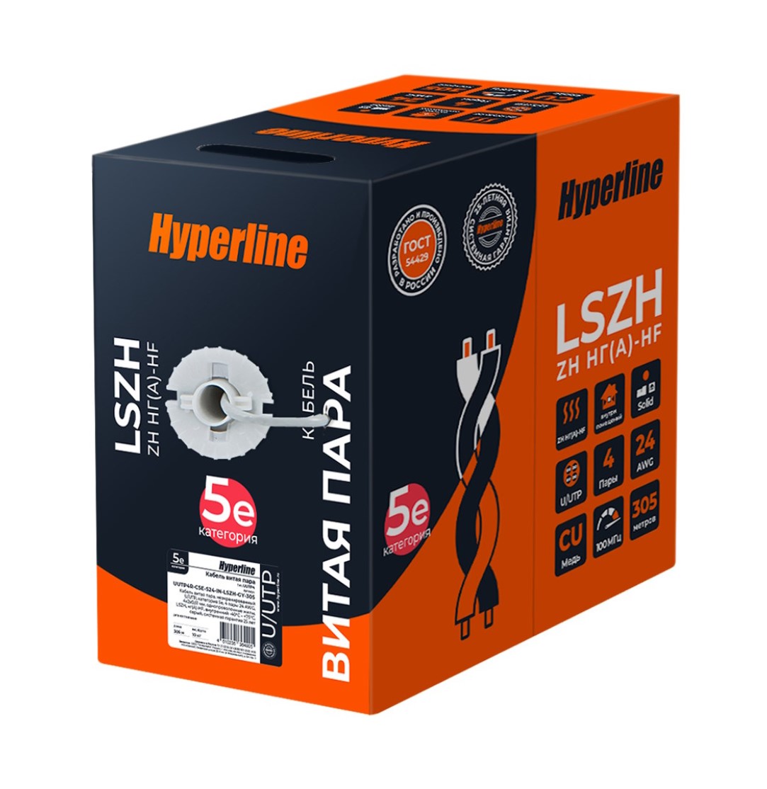 —Hyperline UUTP4R-C5E-S24-IN-LSZH-GY-305 Кабель витая пара, неэкранированный U/UTP, категория 5e, 4 пары 24 AWG, 4х2х0,51 мм,