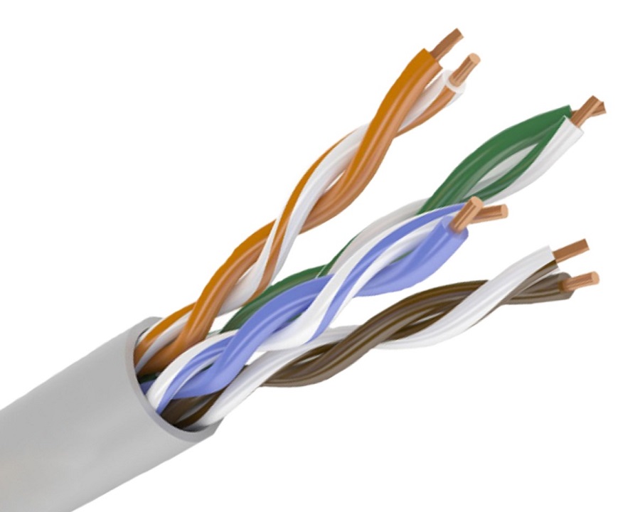 Кабель для прокладки внутри помещения, медный. Серая оболочка, изоляция ПВХ 0,55 мм, диаметр проводника 24AWG, диаметр кабеля 5.1+ 0,2мм, дальность передачи данных 100м, рабочая температура от -20 до +75°С. Бухта 305м