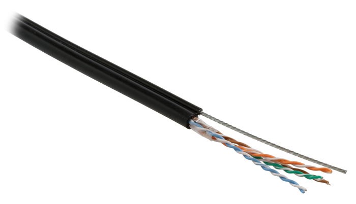 Кабель витая пара U/UTP, кат.5e, 4 пары (24 AWG), одножильн. (solid), с металл. тросом, внешний, PE, -40°C - +60°C, черный - гарантия: 15 лет компонентная