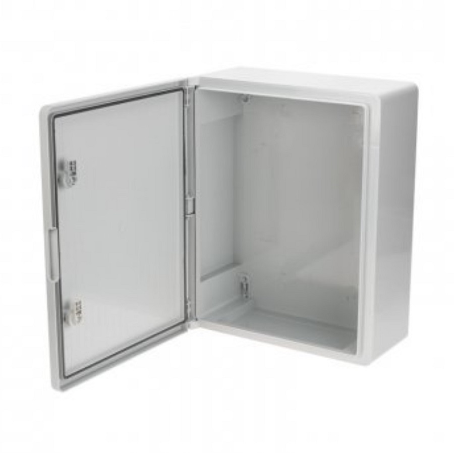 Корпус пластиковый ЩМПп с монтажной панелью 500х350х190мм ABS УХЛ1 IP65 REXANT Корпус пластиковый ЩМПп IP 65 с монтажной панелью предназначен для сборки разнообразных электрощитов: силовых, управления и автоматики. Позволяет производить монтаж аппаратуры как модульного, так и обычного исполнения, до 400В. Доступны исполнения с серой и прозрачной дверцей. В комплектацию входит оцинкованная монтажная панель, ключ, кронштейны и набор винтов для крепления. Максимальная степень защиты от пыли и влаги за счет резинового уплотнения. Благодаря усиленному корпусу, выполненному из ударопрочного ABS пластика, стойкого к УФ-лучам, отсутствует необходимость в заземлении корпуса и обеспечивается возможность использования в системе АСКУЭ. Технические характеристики: Вид установки – навесной. Материал корпуса: АБС-пластик Цвет: серый RAL 7035 Степень защиты: IP65 Ударопрочность: IK10 Статическая нагрузка: 31 кг Рабочая температура: –45...+85 °С Размеры (ВхШхГ): 500х350х190мм