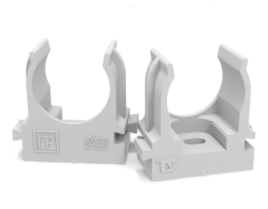 Крепёж-клипса для труб "Промрукав", D=20 мм, t-монтаж..-5…+50°С, t-раб.-25…+60°С. Цвет - серый (RAL 7035)