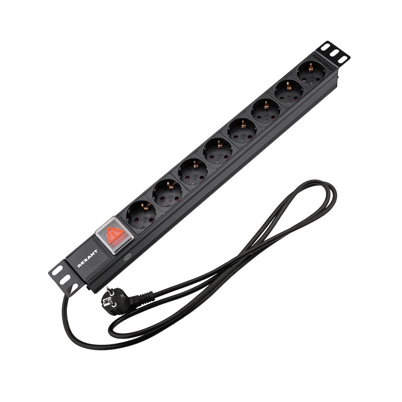 Блок розеток 19", горизонтальный; 16А; Schuko; 8xSchuko; 2м; 55х45х483мм.