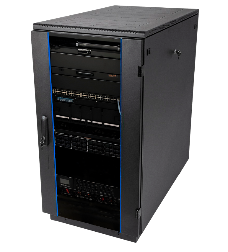 Серверный шкаф в сборе представляет собой комплекс аппаратно-программных систем, интегрированных в единую защищенную конструкцию для обеспечения бесперебойной работы оборудования системы видеонаблюдения.