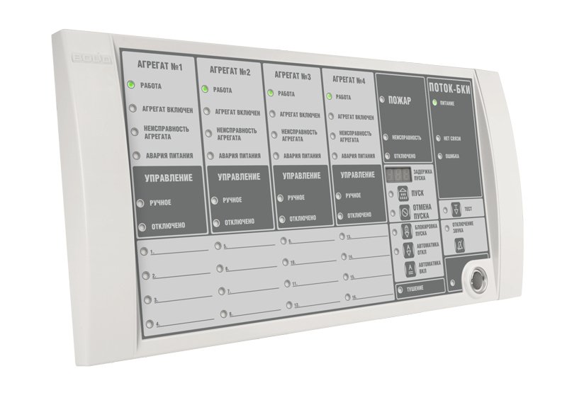 Обеспечивает световую и звуковую индикацию состояния станции пожаротушения, выполненной на основе блока "Поток-3Н" и дистанционное управление этим блоком.