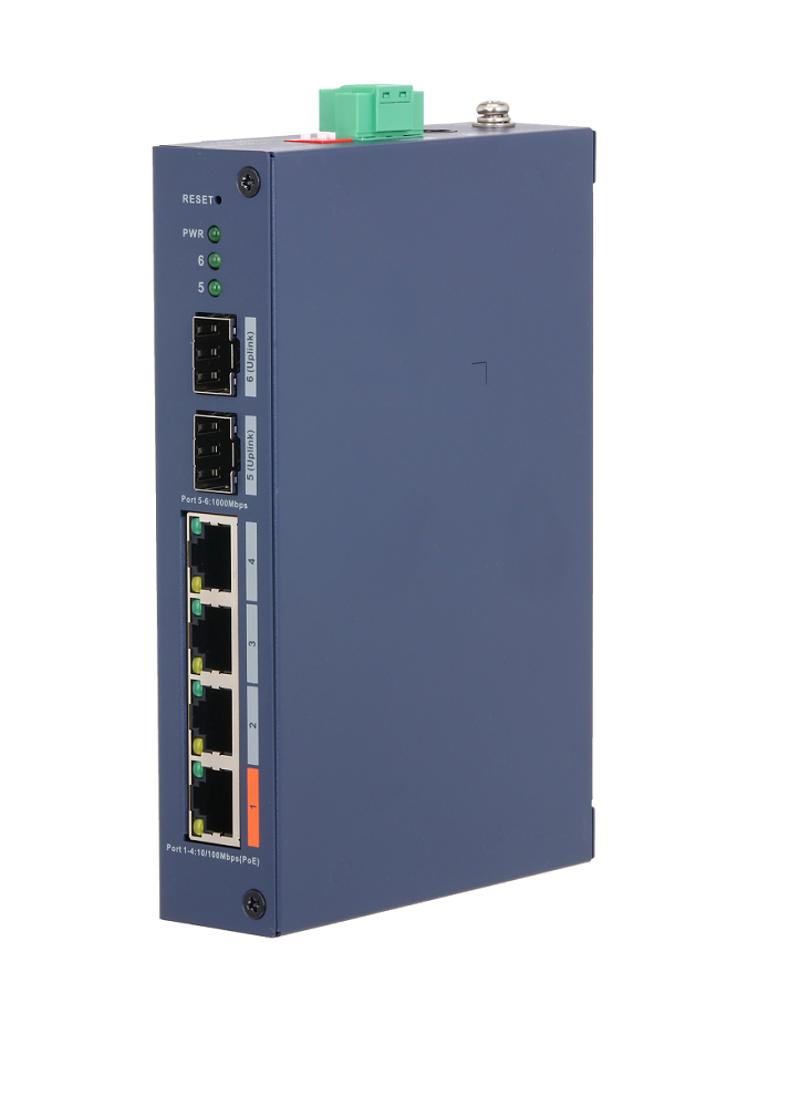 Порты: 4 RJ45 10/100Мбит/с (PoE/PoE+/Hi-PoE), 2 SFP 1000Мбит/с (uplink); мощность PoE: порт 1 до 60Вт, порты 2~4 до 30Вт, суммарно до 60Вт; PoE watchdog, передача до 250м; питание: 48~57В(DC); грозозащита: до 6кВ; рабочая температура: -30°С~+65°С; IP30, IK06; монтаж на DIN-рейку