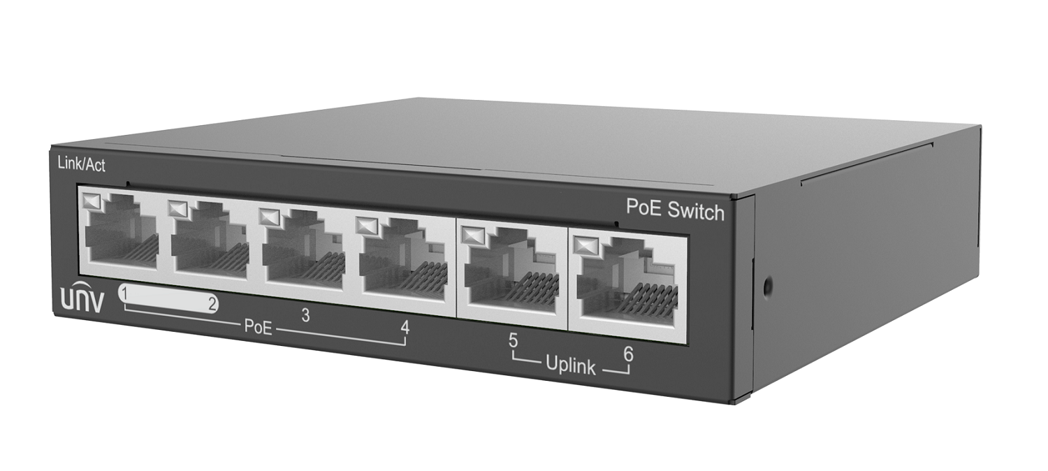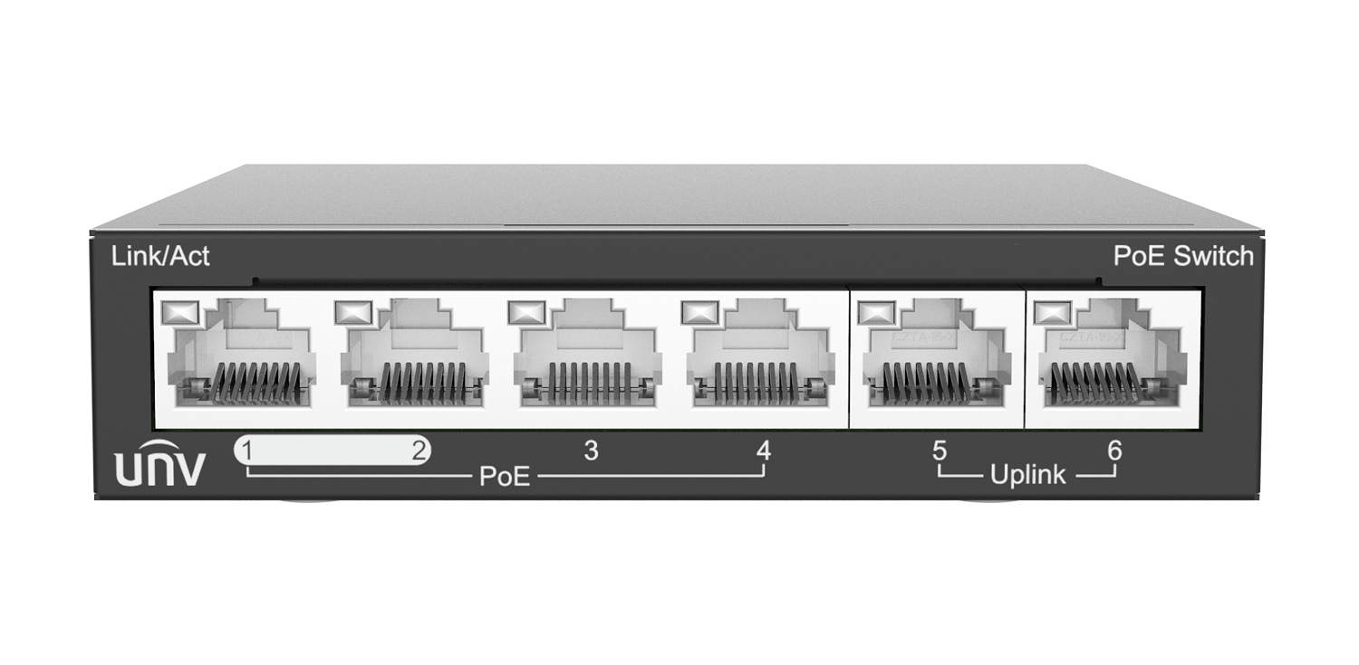 6 сетевых портов×100Mbps (RJ45), включая 4 PoE порта (IEEE802.3,  IEEE802.3u, IEEE802.3az, IEEE802.3x, IEEE802.3af, IEEE802.3at), коммутационная способность 1.2Gbps, скорость пересылки пакетов 0.90Mpps, размер буфера 448Kbit, MAC 1K, общий бюджет мощности 60 Вт, максимальная мощность на порт 30Вт., Дальность передачи до 250 м в режиме наблюдения.