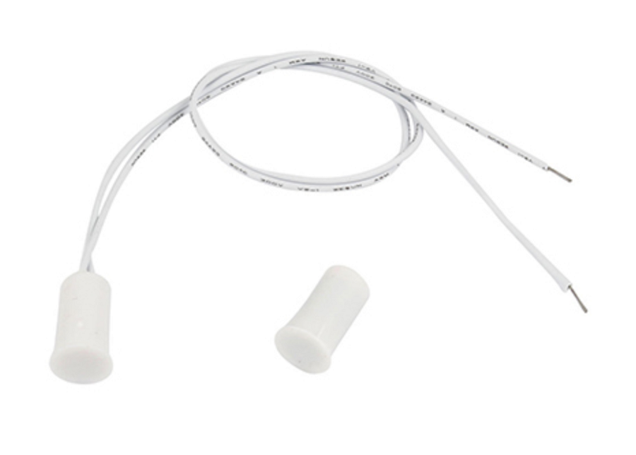 Магнитоконтактный датчик открытия (геркон). Врезной тип установки. Рабочий режим до 18мм. Пластиковый корпус белого цвета. Не требует подачи питания. Размеры 11х18мм.