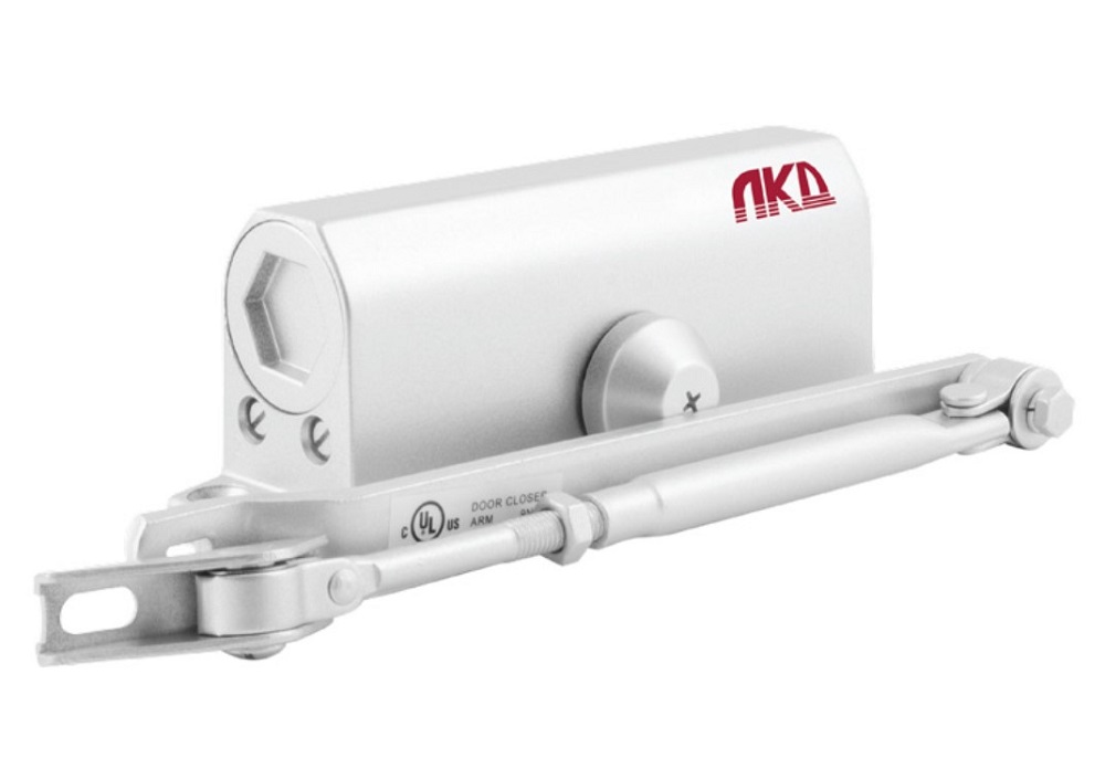 Гидравлический дверной морозостойкий доводчик ЛКД-ДБ-15 50 с ФОП - Белый идеально подходит для установки на межкомнатные и входные двери весом от 120 до 160 кг. Скорость закрывания двери регулируется при установке в двух диапазонах при помощи винтов.