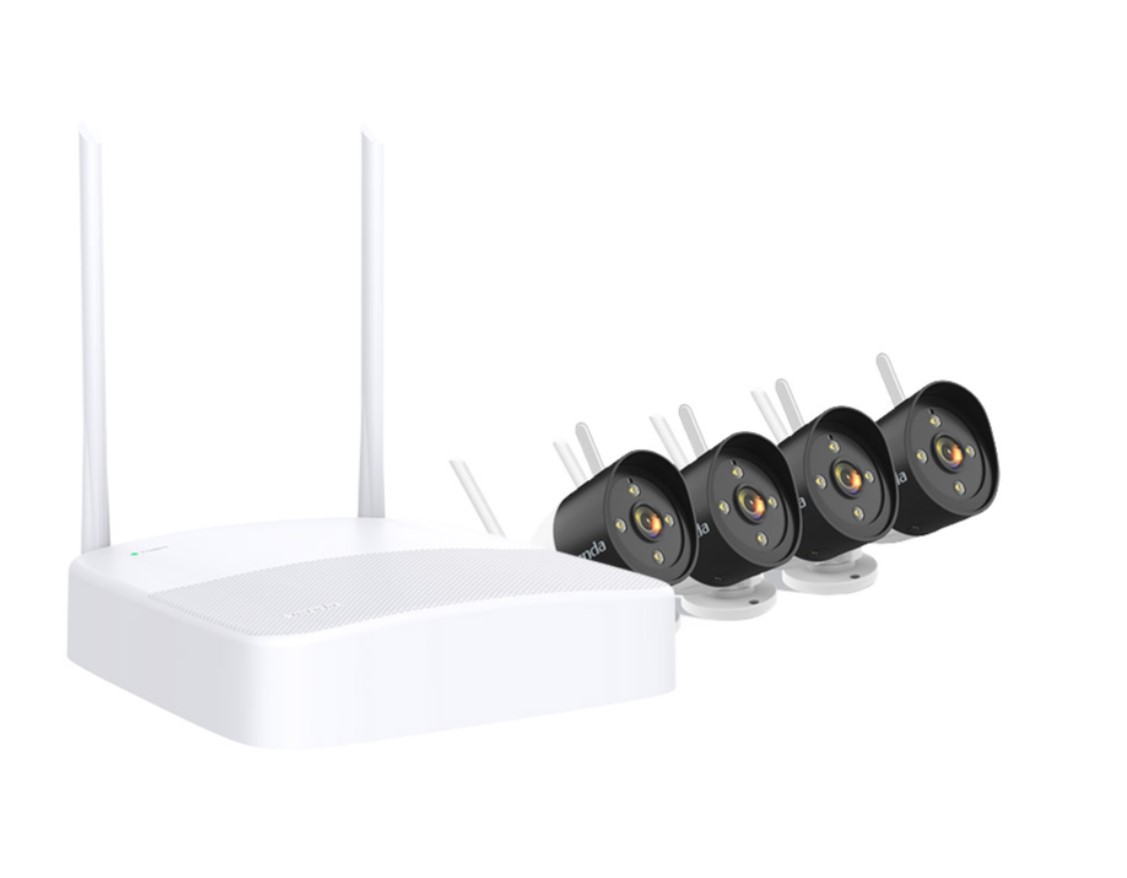 Комплект видеонаблюдения Tenda K4W-3TC предназначен для наружного наблюдения. Состоит из: видеорегистратора и 4 камер. Камера - тип конструкции: цилиндрическая, пластик, Степень защиты: IP66; подключения: WiFi; Управляется через специальное приложение TDSEE. Матрица CMOS 3Мп, 4mm@F1.6, подсветка: инфракрасная, дальность подсветки: 30м; обнаружения подозрительного движения, удаленный захвата звука на расстоянии до 5 метров; 3D-DNR, DWDR;  (H.265/H.264 (2304x1296@15/к.с.) поддерживаемые протоколы:  RTSP, HTTP, DHCP, DDNS, ONVIF; Питание: PoE 802.3af, Рабочая температура: -20 + 60C; 8-канальный IP-видеорегистратор; Видеовходы: 4xRJ45 POE, Видеовыходы: 1x HDMI FullHD(1920x1080)/60Hz, 1x VGA 1920 × 1080p/60Hz Аудиовходы: 1xRCA, Аудиовыходы: 1xRCA; Входящий поток 60Мб/с; исходящий поток 60Мб/с; разрешение записи до 3Мп; просмотр видео на мониторе при помощи приложения TDSEE